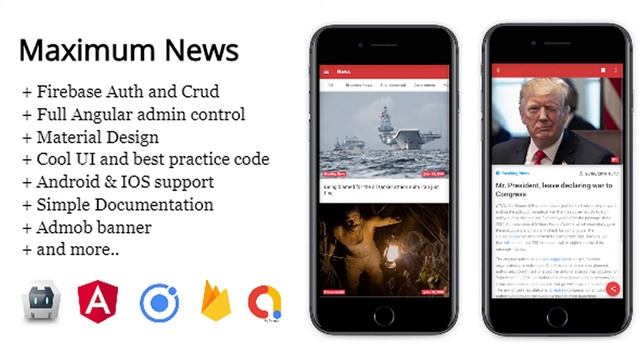 Maximum News Ionic 4 - Full Application with Angular AdminPanel & Firebase backend + Admob |