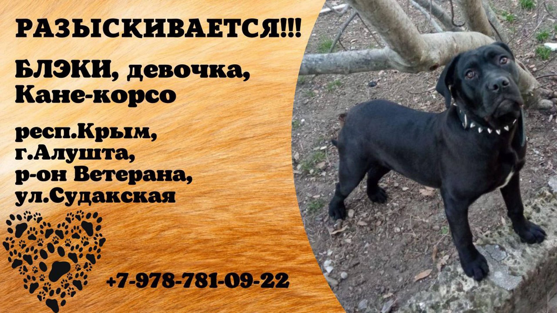 Крым Алушта Пропала собака! 15.03 Потерялась собака породы Кане-корсо. Сбежала со двора в р-не Ветеран, ул. Судакская. Окрас черный (на груди белое пятно). Сука. Кличка- Блэки. Была в ошейнике с шипами. Кто увидит- сообщите, пожалуйста, по тел. +79787810922 По возможности придержите. Собака добрая, застенчивая (не агрессивная) Инфо https://vk.com/wall-198815410_185496 #пропала_собака#Крым#Алушта#кане_корсо