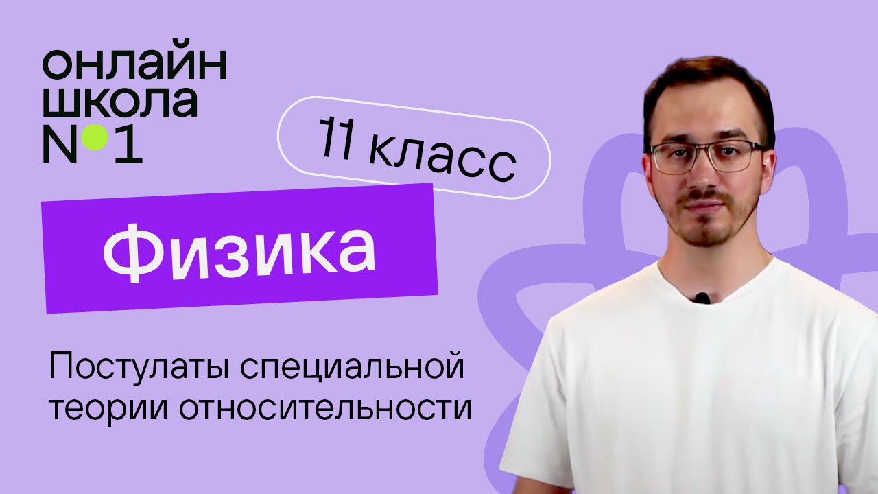 Тема урока: «Постулаты специальной теории относительности. Относительность одновременности событий. Замедление времени и сокращение длины». 📌Содержание: 0:00 Вступление 0:18 Скорость механической волны 0:42 Скорость света в вакууме 1:07 Специальная теория относительности 1:40 Первый постулат 2:32 Второй постулат 4:08 Вывод 4:44 Следствия постулатов 5:10 Событие в СТО 5:37 Соотношения в механике Ньютона 6:24 Относительность одновременности событий 7:03 Относительность промежутков времени 9:06 Относительность пространственных промежутков 10:27 Что мы изучили 📙 Электронная библиотека: https://app.onlineschool-1.ru/11-klass/fizika ______________ Присоединяйтесь к нам! Онлайн-школа №1 - это общеобразовательная дистанционная школа с аттестатом и программой ФГОС. Поступить в Онлайн-школу №1: https://onlineschool-1.ru 👉 Следите за новостями школы в социальных сетях: Вконтакте: https://vk.com/onlineshkola_1 Телеграм: https://t.me/onlineschool1ru Яндекс.Дзен: https://zen.yandex.ru/onlineschool #физика #теорияотносительности #11класс #онлайншкола1 #физика11класс #егэ