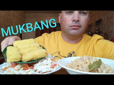 МУКБАНГ МАКАРОНЫ с фаршем/ОБЖОР сырные палочки и салат из овощей