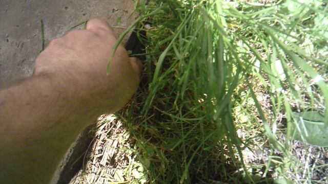 Прополка края бетонной дорожки.