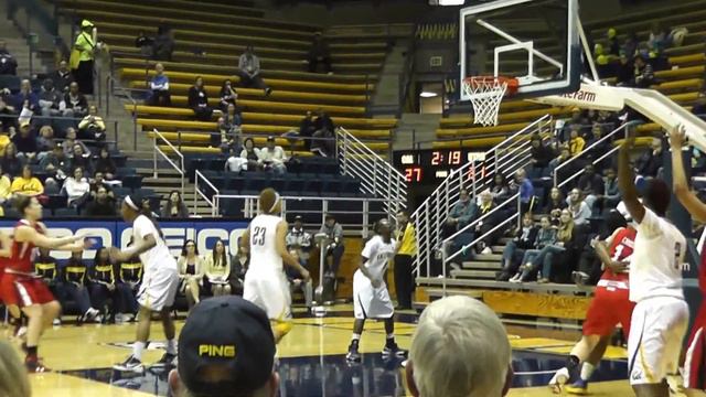 Eliza Pierre grabs the defensive rebound, despite being the shortest player on the floor, and Reshanda Gray grabs an offensive rebound and scores for the Bears. Final score: California 71, Utah 54. Berkeley, California, January 27, 2013.