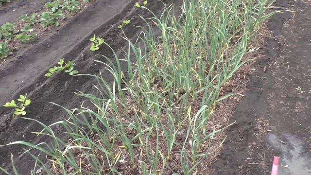 Подкормил озимый чеснок куриным пометом