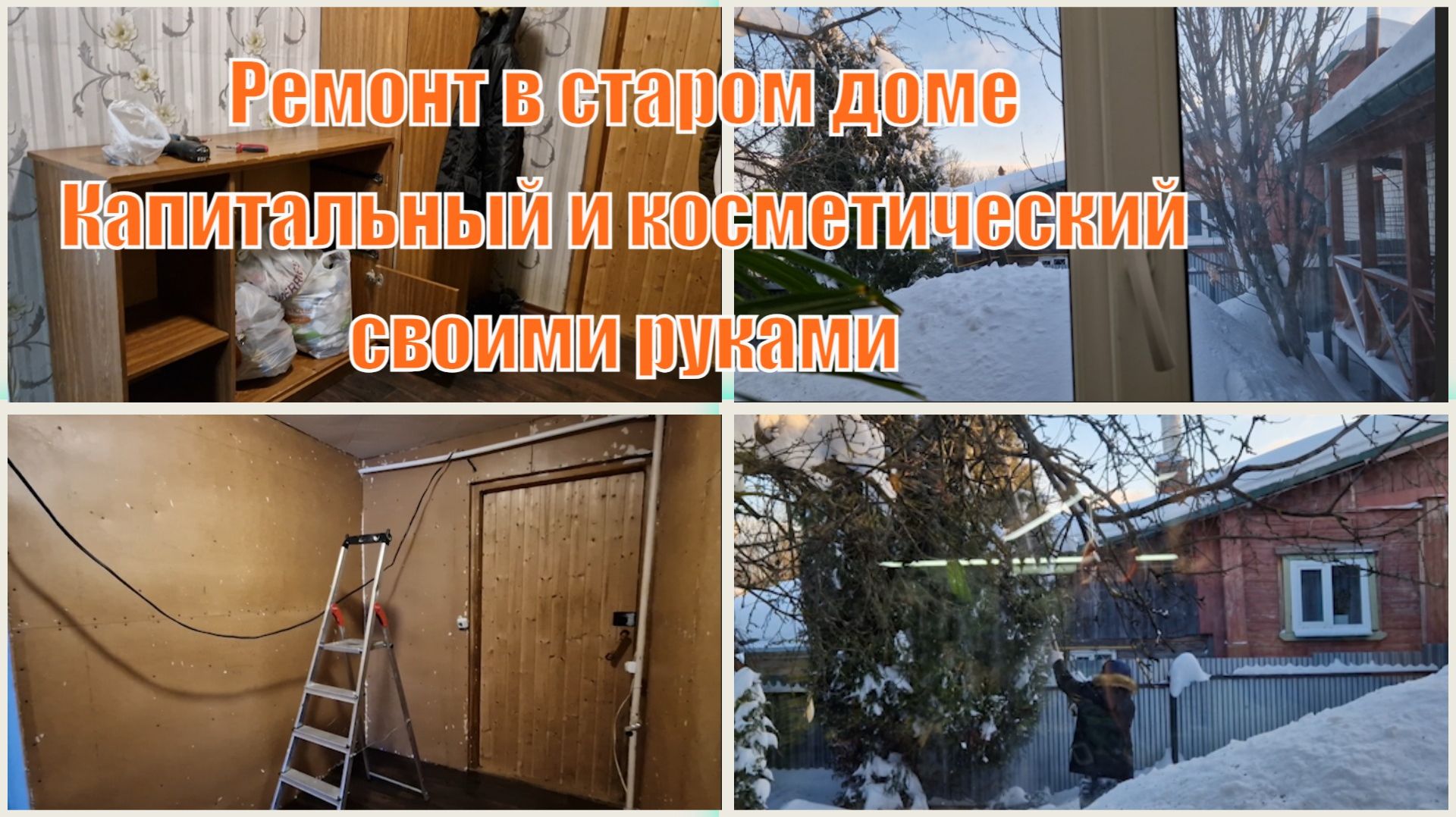 Ободрала старые обои в прихожей. Привезли мебель. Чистим можжевельники от снега