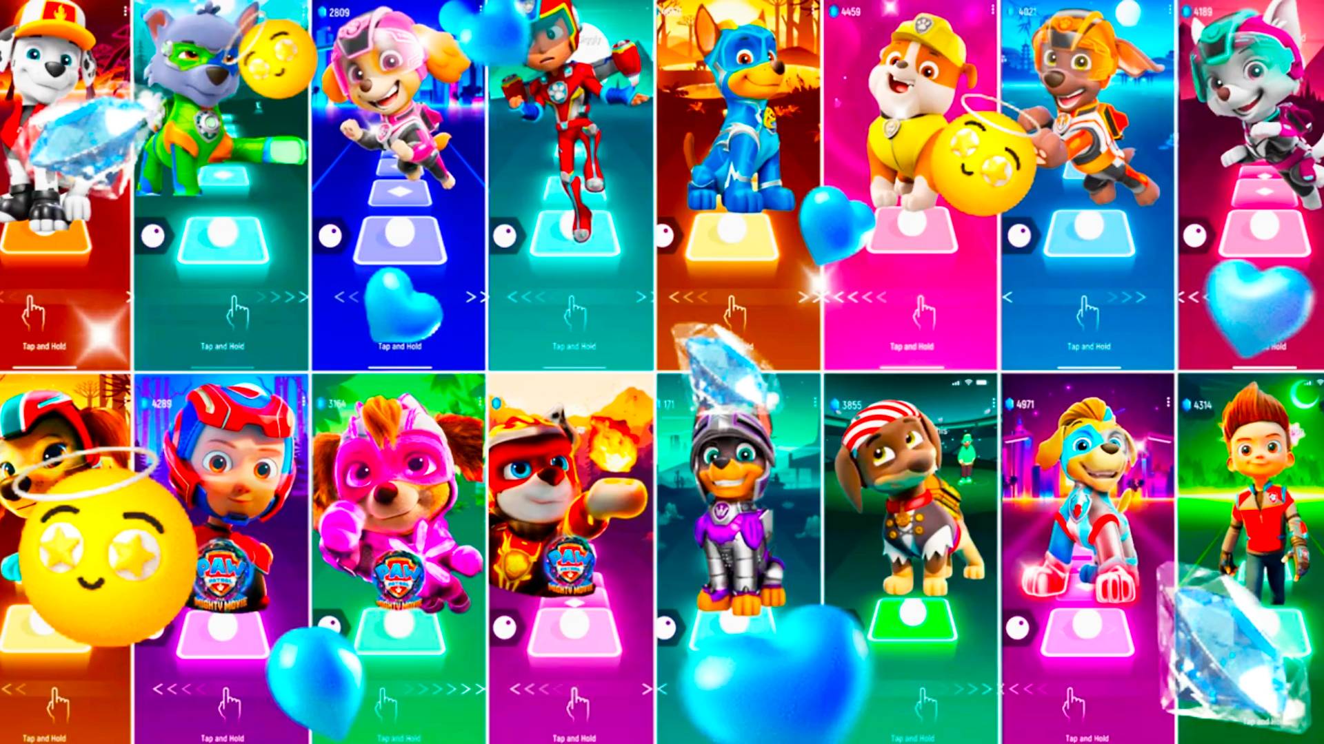 Мультики для Детей Щенячий Патруль Tiles Hop - Маршалл, Рокки, Скай, Райдер, Гончик, Крепыш