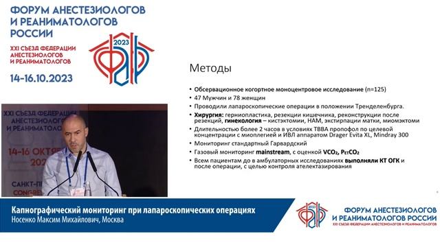 Капнография при лапороскопии Носенко ММ съезд ФАРР 2023