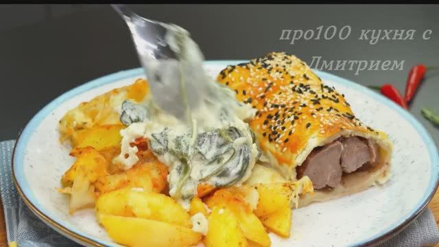 Ингредиенты: 600 г свиной вырезки. Соль и перец. Мясная приправа. Делайте, как показано. Масло. Обжарить с двух сторон до золотистого цвета. 1 лук. Снимите мясо со сковороды. На том же масле обжарьте лук. 2 зубчика чеснока. 100 г шпината. Соль и перец. 200 г сметаны. 50 мл воды. 1 чайная ложка кориандра. 100 грамм сыра моцарелла. Раскатайте тесто. Желтки отделить. Смажьте пирог желтками. Семена кунжута. Выпекать при температуре 200°C/392°F в течение 30 минут. 5-6 картофелин. Соль и перец. 1 чайная ложка чесночного порошка. 1 чайная ложка паприки. Розмари. Масло. Выпекать при температуре 200°C/392°F в течение 30 минут. Посыпать сыром. Выпекайте при температуре 200°C/392°F в течение 10 минут, пока сыр не расплавится. Приятного аппетита! ?