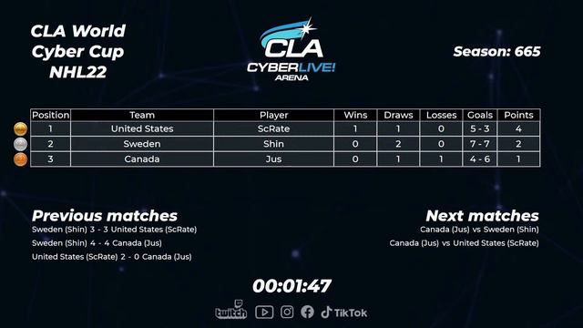 Sweden (Shin) - United States (ScRate) Sweden (Shin) - Canada (Jus) United States (ScRate) - Canada (Jus) United States (ScRate) - Sweden (Shin) Canada (Jus) - Sweden (Shin) Canada (Jus) - United States (ScRate) #cyberlivearena #nhl22 #esports #esportsplayer #ps5