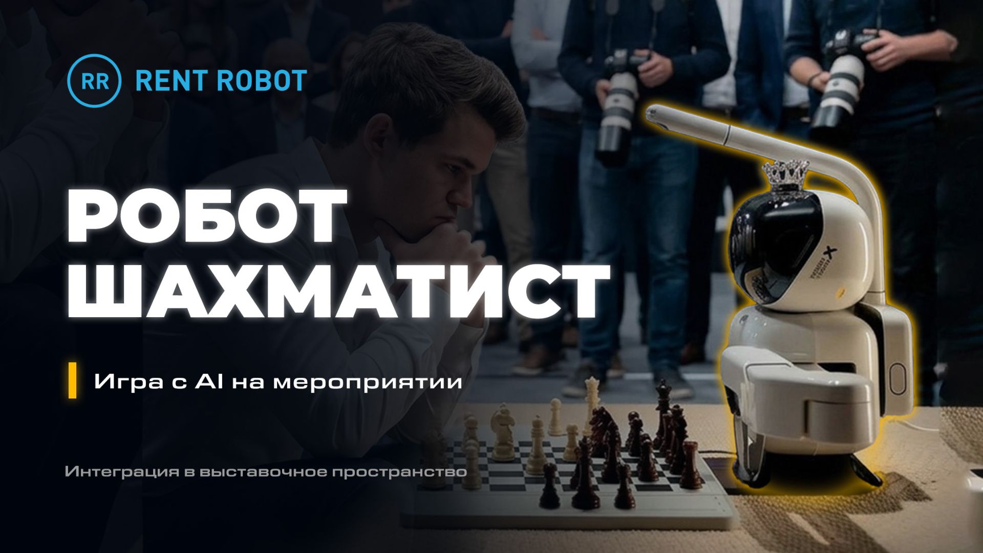 Робот-шахматист — интерактивная зона для мероприятий, где гости могут сыграть партию с роботом. Он анализирует ходы, двигает фигуры и создаёт живое вовлечение на стенде. Rent-Robot.ru — продажа и аренда роботов на мероприятия «под ключ» по всей России. Что делаем: подбираем робота под задачу • пишем сценарий • доставляем и монтируем • работаем на площадке • брендируем под ваш проект. Сайт: https://rent-robot.ru/?utm_source=rutube&utm_medium=video&utm_campaign=signature&utm_content=site Связь: MAX: https://max.ru/id507271636100_bot Telegram: https://t.me/Rentrobot_bot WhatsApp: https://wa.me/79153338911 Города: Москва • Санкт-Петербург • Сочи • Казань • Екатеринбург • Краснодар • вся Россия