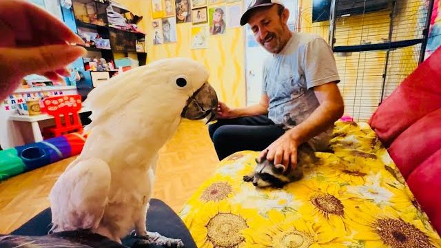 ЭТО НЕЧТО! Енот Тимошка пришел знакомиться к праугаю Жорику)))