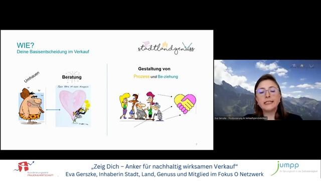 Digitales Netzwerkevent "Wirksam vernetzen" vom 12.10.2022, ein Digitalevent der Koordinierungsstelle Frauen & Wirtschaft Impuls: „Zeig Dich – Anker für nachhaltig wirksamen Verkauf“ Eva Gerszke, Inhaberin Stadt, Land, Genuss und Mitglied im Fokus O Netzwerk Links: Veranstaltungsseite: https://www.jumpp.de/fw-netzwerk Projektseite: https://www.jumpp.de/projekte/koordinierungsstelle-frauen-wirtschaft Eva Gerszke: https://www.stadt-land-genuss.com/ Fokus O - Unternehmerinnen Netzwerk Oberursel: https://fokus-oberursel.de/saeulen/unternehmerinnen/ #jumppFFM #HessUtag #Wandel #Wirtschaft #Gründerinnen #Unternehmerinnen #selbstständigkeit #Hessen #Femalefounders #Fempreneurs