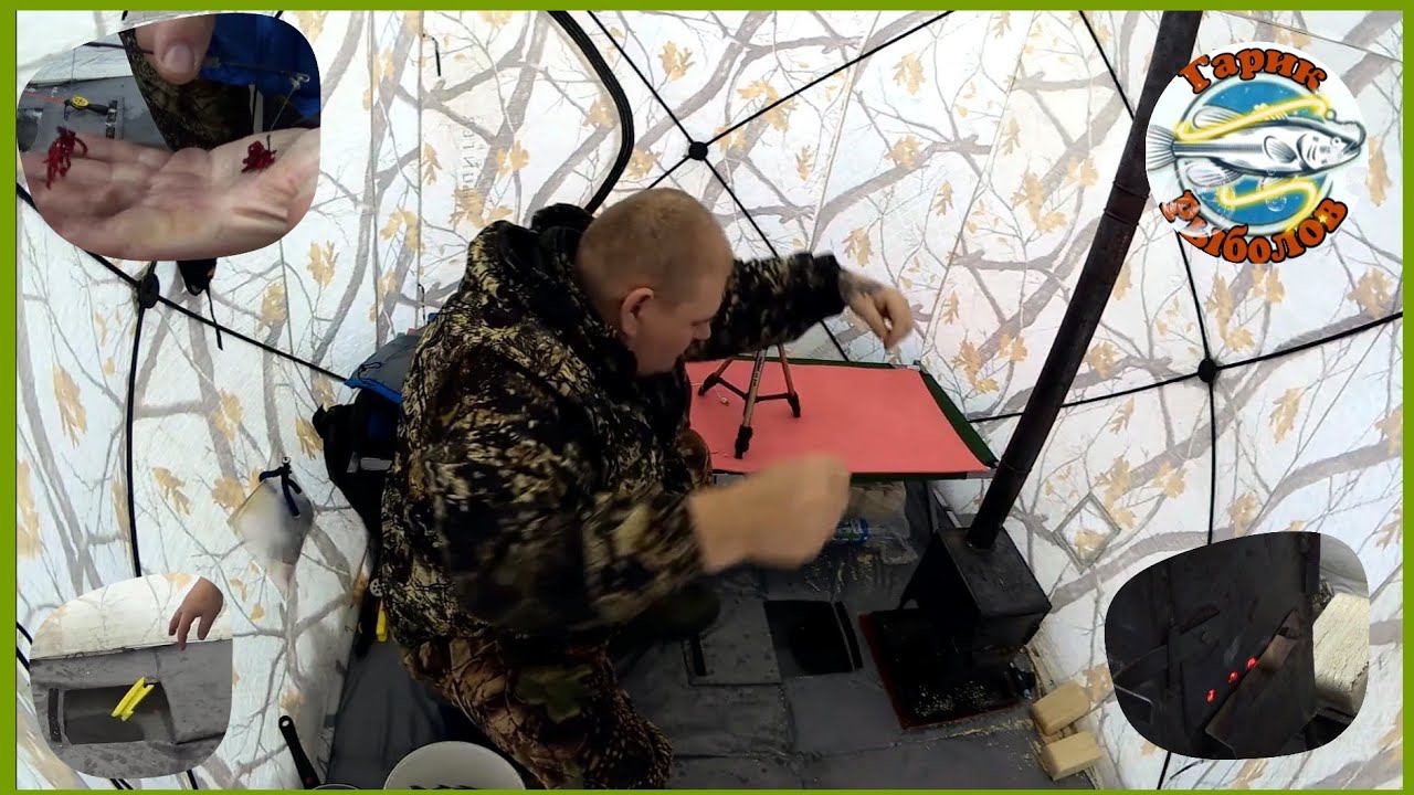 Зимняя рыбалка с ночёвкой на реке ,палатка и печка делают комфортным прибывание на льду.