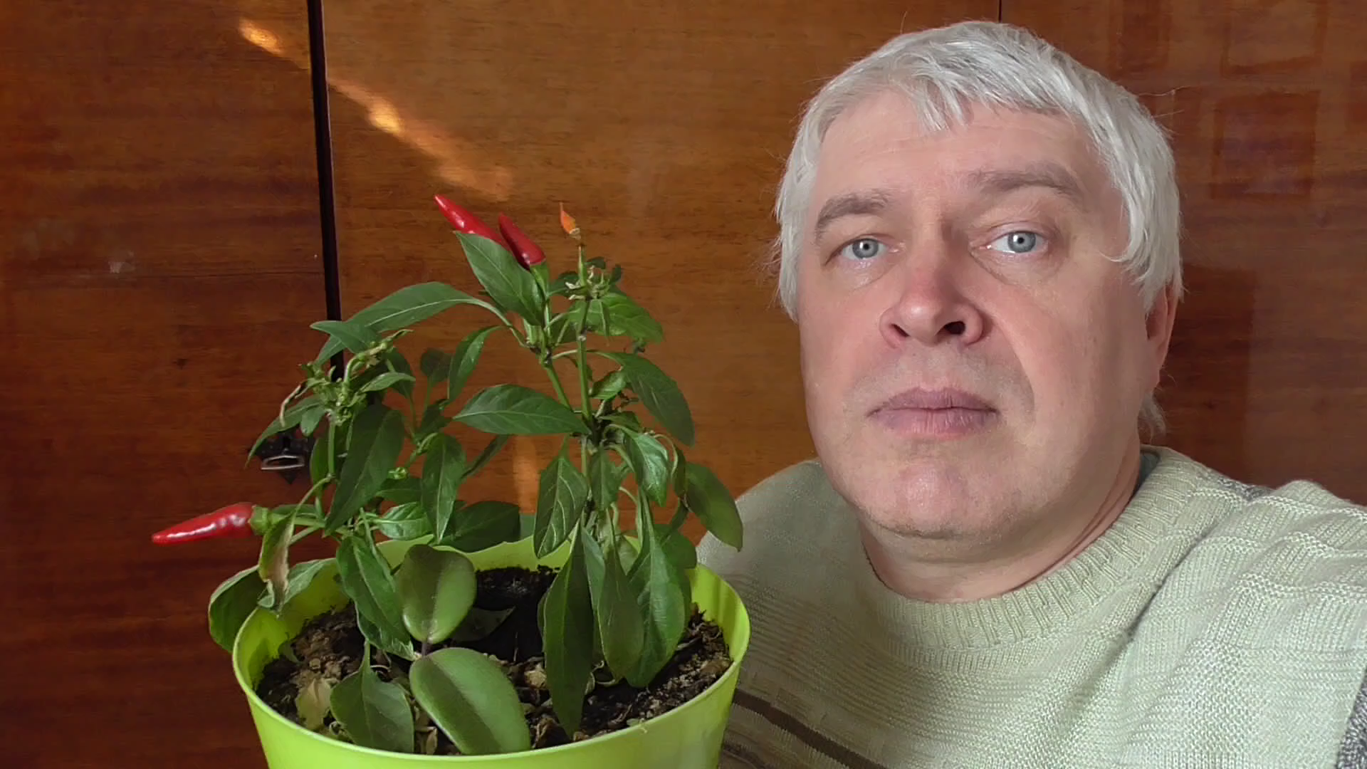 В цветочном горшке растёт многолетний горький перец красный