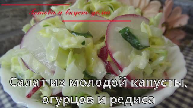 Салат из молодой капусты, огурцов и редиса