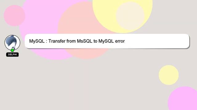 MySQL : Transfer from MsSQL to MySQL error To Access My Live Chat Page, On Google, Search for "hows tech developer connect" So here is a secret hidden feature I promissed to tell you. This is a YouTube's feature which works on Desktop. First, Ensure that the video is playing before proceeding. Next, enter the letters 'awesome' on your keyboard. It will change your youtube progress bar into a flashing rainbow. A short overview of who I am, Hello, I am Delphi. I help you answer your questions. MySQL : Transfer from MsSQL to MySQL error I welcome your comments and chats if you have more detailed queries. If you have knowledge to contribute or an answer to provide, we encourage you to comment below. A 'heart' from me will indicate my appreciation for your answer. to error MySQL MsSQL from Transfer MySQL :
