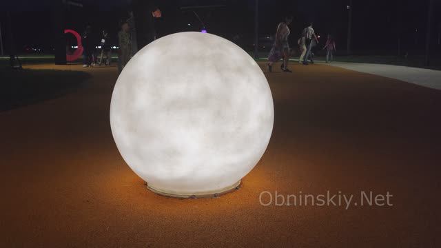 Ночная площадь возле Дома учёных - новые светящиеся качели и шары