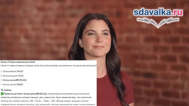 Положение алюминия в ПСХЭ, строение атома. Физические свойства алюминия. Химические свойства алюминия: взаимодействие с неметаллами, оксидами металлов (алюмотермия), кислотами и щелочами. Амфотерность оксида и гидроксида алюминия. Подготовка и обучение школьников с помощью ИИ: https://sdavalka.ru/. Как работать? - Зарегистрируйтесь. - Найдите нужный предмет и класс. - Изучите материалы по урокам: текст, понятный ученикам, сжатый видеоурок с ИИ. - Пройдите тренировочный тест (можно проходить бесконечно, для усвоения материала). - Уверены, сдавайте экзаменационный тест! - И так по каждой теме. - В конце итоговый тест. - Сдадите все - сдадите любой экзамен! Системы дистанционного образования, контент: https://ecre.ru/ Подготовка для ВУЗов и СУЗов: https://mexam.ru/