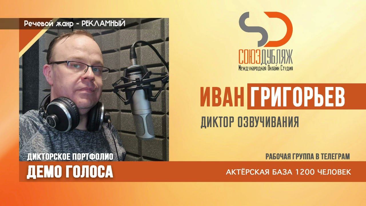 #СоюзДубляж #БазаДикторов #Озвучка ✔️Иван Григорьев, диктор озвучивания. Международная Онлайн-Студия "СОЮЗДУБЛЯЖ" - профессиональная озвучка и дубляж. ▪️Рабочая группа в Телеграм: https://t.me/soyuzdubliazh ▪️Контакт для связи: https://t.me/SoyuzAdmin ▪️Подпишись:https://www.youtube.com/c/SOYUZDUBLIAZH ▪️Сайт: https://www.soyuzdubliazh.com/ Лучшие голоса для вашей аудиорекламы и видеороликов. База дикторов - 5 000 человек, профессионального уровня на ENG| FR| TR| RU| ISR| AZ| UA| KZ| UZ| языках. Мужские и Женские топовые голоса для озвучки любых проектов, таких как: Рекламы, Презентации, Фильмы, Сериалы, Игры, Мультфильмы, ТВ Шоу, Аудио-видео визитки. ✔️Сотрудничая с нами вы получаете свой проект под ключ, не выходя из дома или офиса. Наша слаженная команда из лучших дикторов, актёров озвучивания, режиссёров и звукорежиссёров в кратчайшие сроки озвучат или отдублируют ваш заказ на профессиональном уровне. Образцы работ нашего портфолио вы сможете посмотреть на канале СОЮЗДУБЛЯЖ. ВНИМАНИЕ: ✔️Мы приглашаем специалистов озвучки к сотрудничеству в нашей команде. Вы можете пройти по ссылке в наш телеграм канал и связаться с Админом для обсуждения. ✔️Всем заказчикам подобных медиа проектов по озвучки и дубляжу фильмов, сериалов, документалок обращаться непосредственно к Админу Телеграм группы СОЮЗДУБЛЯЖ, пройдя по ссылке: Проходи по ссылке: https://t.me/soyuzdubliazh International Online-Studio SOYUZDUDLIAZH presents a highly professional approach in voice-over and dubbing. ▪️Our working group https://t.me/soyuzdubliazh ▪️Chief manager https://t.me/SoyuzAdmin ▪️Follow https://www.youtube.com/c/SOYUZDUDLIAZH ▪️Web: https://www.soyuzdubliazh.com/ We offer You the best Voices for your Audio commercials and Video`s. Our Database contains over 5 000 voices of native speakers and high-class foreign language specialists in ENG| FR| TR| RU| ISR| AZ| UA| KZ| UZ|. Male & Female top level voices for all the variety of dubbing projects such as commercials, presentations, movies, TV-series, video and computer games, cartoons, TV-shows, audio & video portfolio’s – all in one place. As your business partner we guarantee a turn-key project without you leaving your house or office. Our target is to make sure that the dubbing of your project is made as quick as possible by a well-coordinated and professional team of the best speakers, film and sound directors. To whom it may concern! We invite dubbing specialists to join our team. Please contact our manager on Telegram https://t.me/soyuzdubliazh