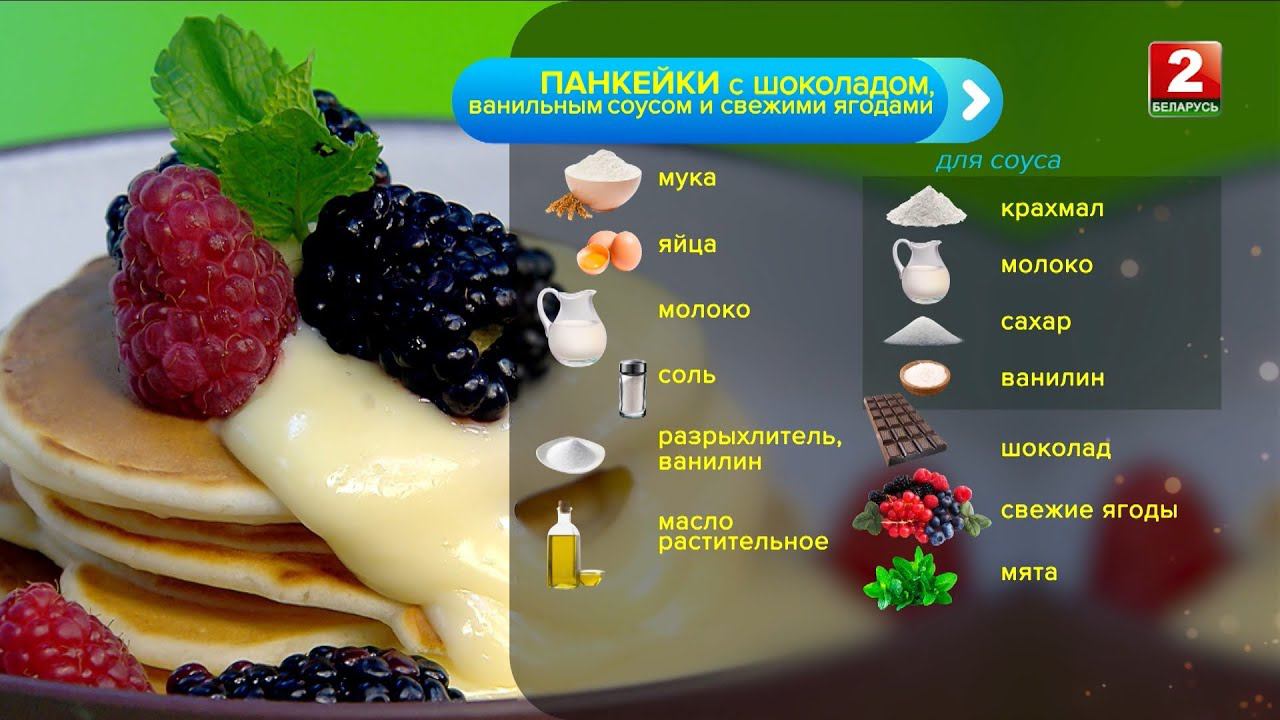 Панкейки с шоколадом и ванильным соусом и свежими ягодами! Вадим Парханович - шеф-повар! Instagram «Включайся!»: https://www.instagram.com/vkluchaysia/ Instagram Беларусь 2: https://www.instagram.com/belarus2tv/