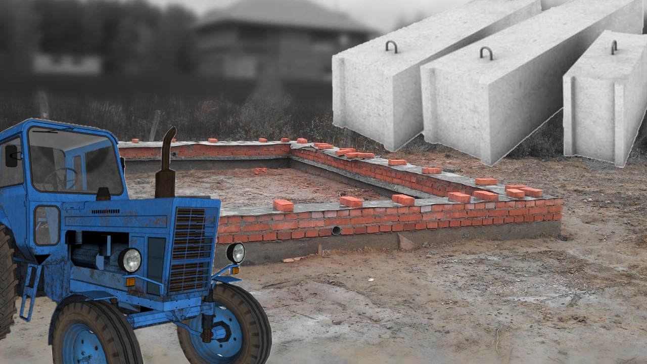 Ленточный фундамент из БУ Блоков ФБС для дома. Архивное видео.