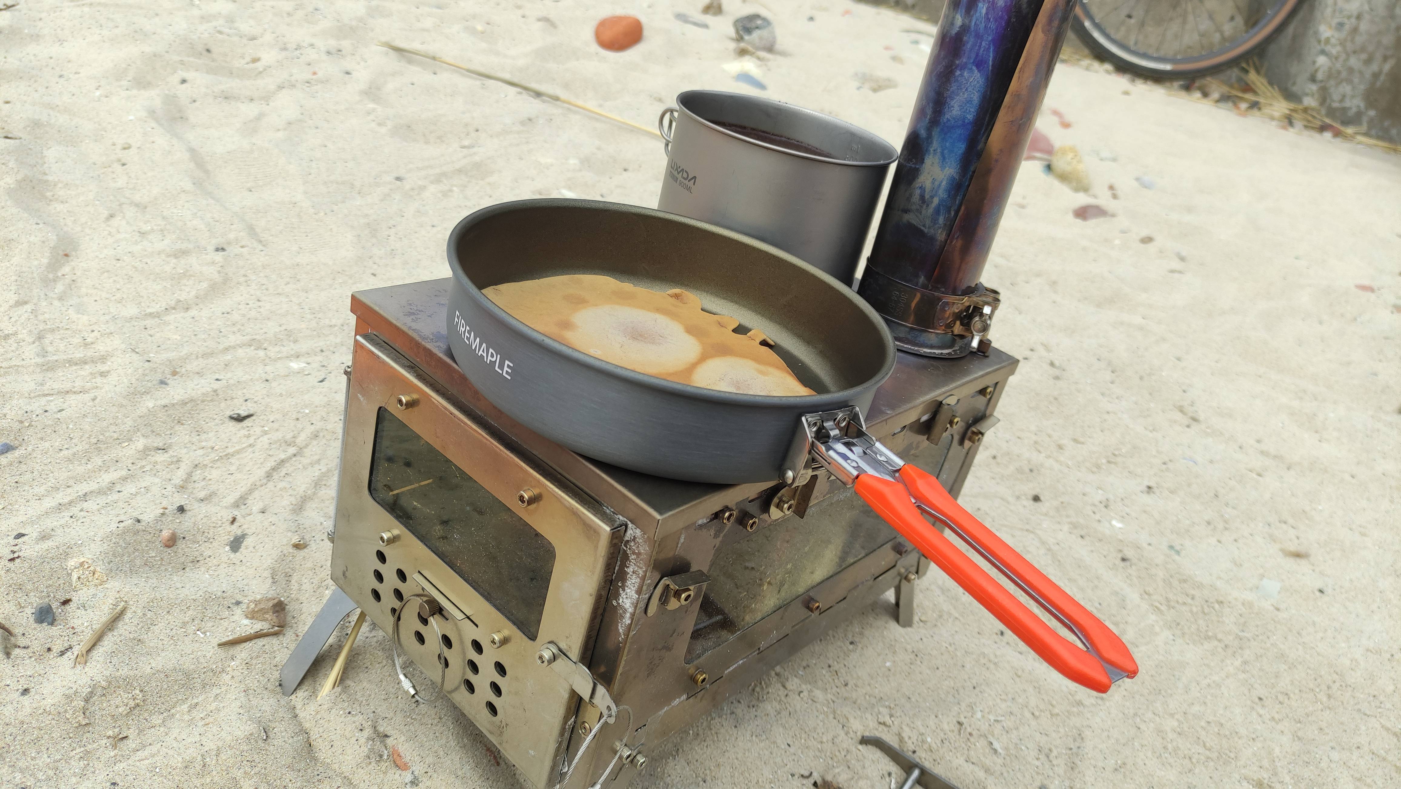 Блины на печке на пляже