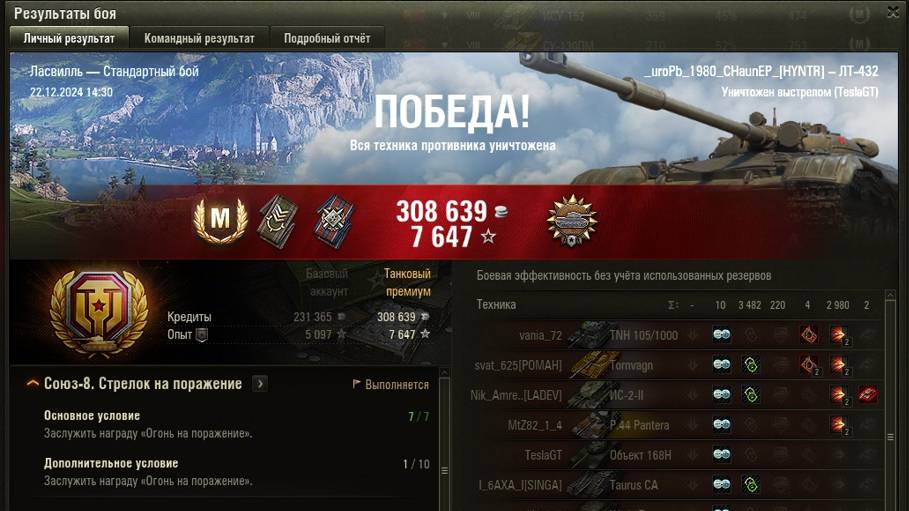 ЛАСВИЛЛЬ МАСТЕР на ЛТ-432 ОПЫТ: 1359 СУММАРНЫЙ УРОН: 6462 медаль РАЗВЕДЧИК
