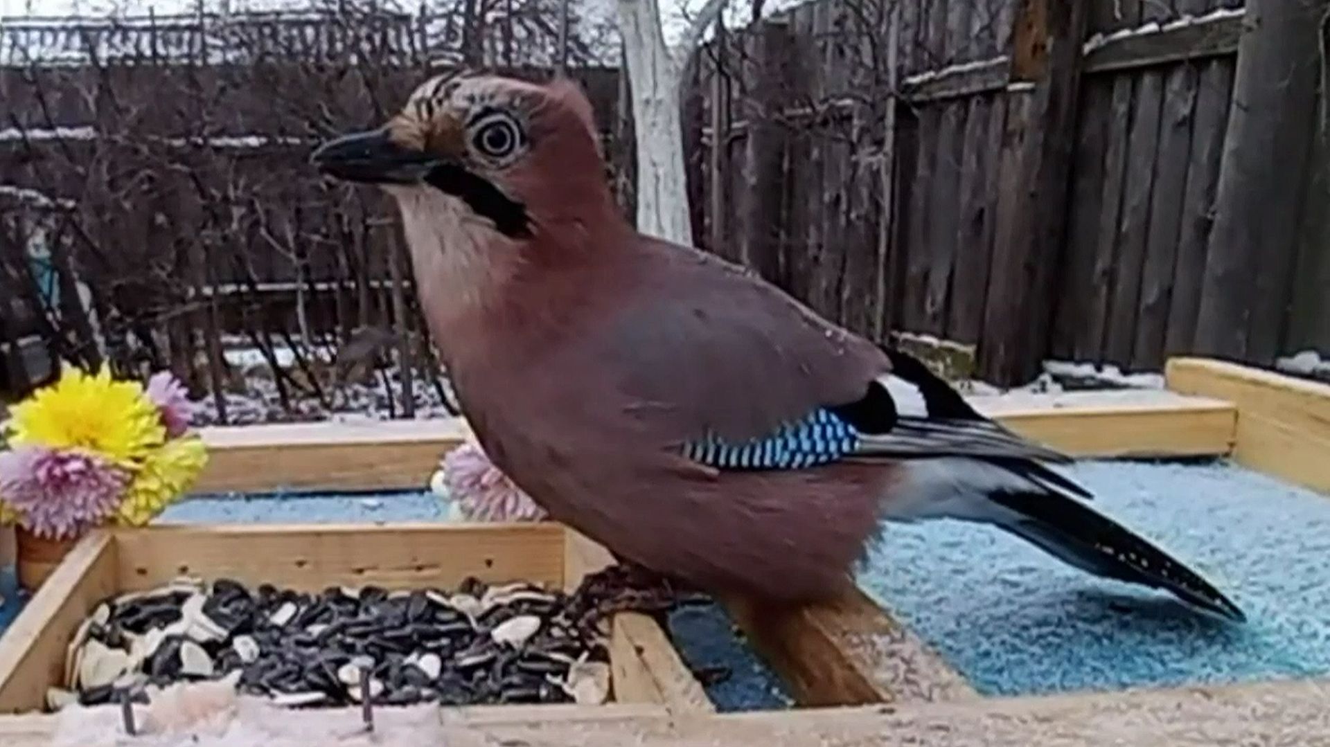Сойки и Кошка на кормушке
