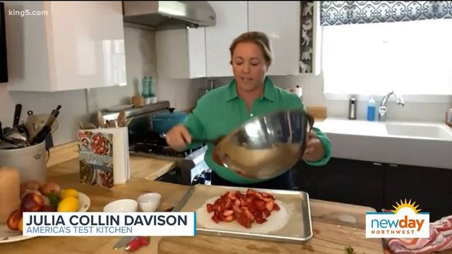 America's Test Kitchen rigorously tests all their recipes, so you know they're all going to be tasty! Their co-host Julia Collin Davison tells us about their new Complete Summer Cookbook, talks about what it's been like cooking from home instead of the test kitchen, and demonstrates how to make a simple and delicious summer dessert. Recipe: Strawberry Galette with Candied Basil and Balsamic, America's Test Kitchen Why This Recipe Works: Whereas pie fillings run the gamut from custards and creams to fruit, chocolate, and nuts, galettes typically feature fruit alone. There's a good reason for this: The exposed fruit does more than just meld into a cohesive filling—it roasts! This deepens the flavor of the fruit and evaporates moisture quickly, so there's usually no need for an added thickener. But we discovered strawberries are an exception. We followed the method of our other galettes and what came from the oven was a watery mess severely lacking in strawberry flavor. We'd need a thickener of some kind. Tossing cornstarch with the berries did the trick, and incorporating some strawberry jam intensified the berry flavor while adding viscosity. This tart was beautifully fresh, but its flavor was further elevated by a drizzle of balsamic glaze made by reducing vinegar with some sugar: The balsamic”™ acidity heightened the flavor of the strawberries while its woodsy fruitiness deepened it. Some ground black pepper provided sharp contrast. And to gild the lily, we finished with some sugared basil leaves that took less than 2 minutes to candy in the microwave. We love these garnishes, but you could substitute 1 tablespoon chopped fresh basil for all of them if you prefer. Serves 6 to 8 Galette 1 recipe Free-Form Tart Dough (page 332) ⅓ cup strawberry jam ¼ cup (1¾ ounces) plus 1 tablespoon sugar, divided ¼ teaspoon table salt 1½ tablespoons cornstarch 1½ pounds strawberries, hulled and halved (5 cups) Garnishes ½ cup balsamic vinegar 1½ teaspoons sugar, divided Vegetable oil spray ¼ cup fresh basil leaves 1 teaspoon coarsely ground pepper For the galette, roll dough into 12-inch circle between 2 large sheets of floured parchment paper. (If dough sticks to parchment, gently loosen dough with bench scraper and dust parchment with additional flour.) Slide dough, still between parchment, onto rimmed baking sheet and refrigerate until firm, 15 to 30 minutes. Adjust oven rack to lower-middle position and heat oven to 375 degrees. Microwave jam, ¼ cup sugar, and salt in large bowl until warm, about 30 seconds. Whisk in cornstarch. Add strawberries and gently toss to coat. Mound fruit in center of chilled dough, leaving 2-inch border around edge. Fold outermost 2 inches of dough over fruit, pleating it every 2 to 3 inches as needed. Gently pinch pleated dough to secure, but do not press dough into fruit. Brush top and sides of dough lightly with water and sprinkle with remaining 1 tablespoon sugar. Bake until crust is deep golden brown and fruit is bubbling, 1 hour to 1 hour 10 minutes. Let tart cool on baking sheet for 10 minutes. Using parchment, carefully slide tart onto wire rack and let cool until just warm, about 30 minutes. For the garnishes, while tart cools, bring vinegar and 1 teaspoon sugar to simmer in 8-inch skillet over medium heat. Cook until vinegar is reduced to 2 tablespoons, 5 to 7 minutes; set aside to cool slightly, about 5 minutes. Line large plate with parchment and lightly spray with oil spray. Arrange basil in single layer on plate, then lightly spray with oil spray and sprinkle evenly with remaining ½ teaspoon sugar. Microwave until bright green and crisp, about 90 seconds; transfer to paper towel–lined plate to cool completely, about 5 minutes. Serve tart, topping with basil and pepper and drizzling with balsamic reduction. Segment Producer Joseph Suttner. Watch New Day Northwest 11 AM weekdays on KING 5 and streaming live on KING5.com. Contact New Day -------------------------------------------------------------------------------------------------------- -------------------------------------------------------------------------------------------------------- KING 5's New Day Northwest is Western Washington's only local daytime talk show. It's hosted by former NBC foreign correspondent and Emmy winning journalist Margaret Larson https://twitter.com/_margaretlarson. Watch New Day Northwest 11 AM weekdays on KING 5 and streaming live on king5.com. 🢒 Follow New Day Northwest! 🢐 FACEBOOK 🢒 https://www.facebook.com/NewDayNW TWITTER 🢒 https://twitter.com/NewDayNW INSTAGRAM 🢒 https://www.instagram.com/king5newdaynw