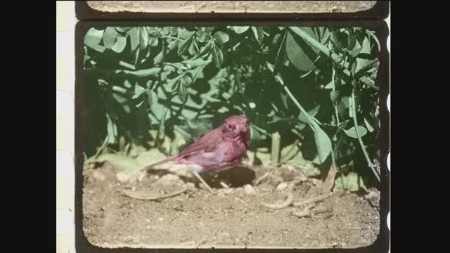 Оцифровка (скан) редкой 35-мм. киноплёнки, снятой на студии "Pathe", и раскрашенной вручную трафаретным способом. Ролик из серии о животных. Здесь зарянка и синица едят червяков и плескаются в луже.