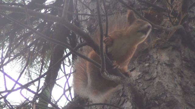Смешные животные Белка ругается. Реальная белка на дереве кедр . Животные белки
