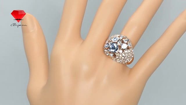 Bije.ru_ Позолоченное кольцо с голубыми кристаллами Swarovski Viviana (Вивиана)