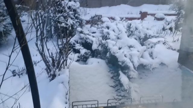 Барбекю у дома снежным вечерком.