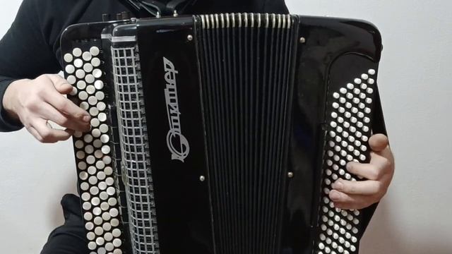 Баян цельнопланочный трехголосный четырехрядный готово-выборный. Фабрика "Юпитер" С. М. Баринова.