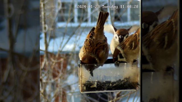 Воробьи в кормушке