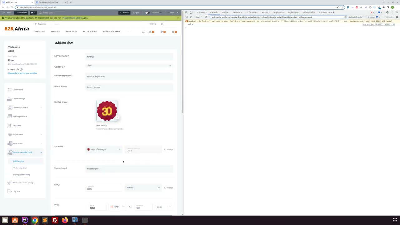 b2b africa Страница добавления Услуги Фронт
