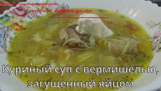 Куриный суп с вермишелью, загущенный яйцом