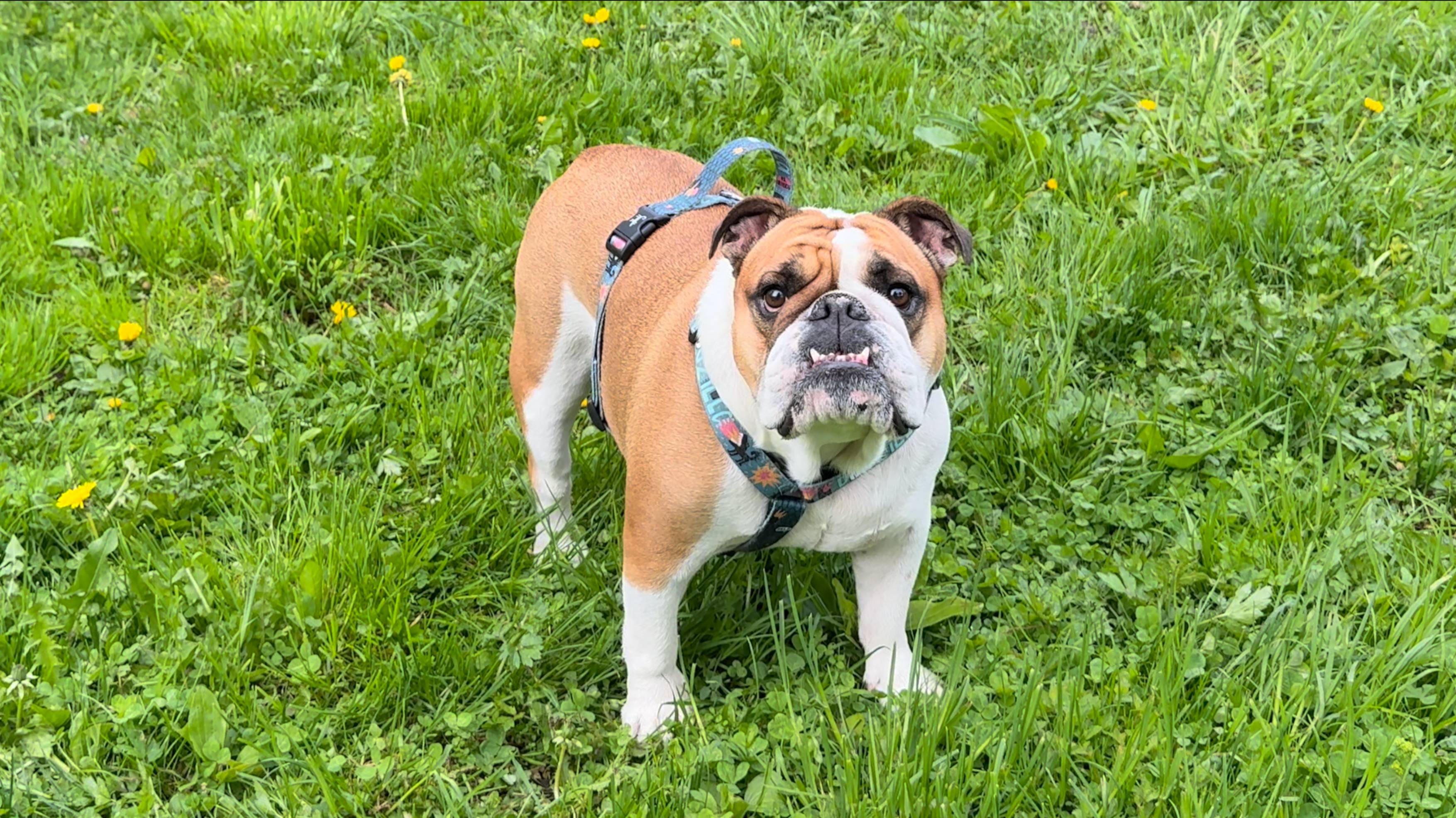 Английский бульдог Черри и кане-корсо Зевс играют