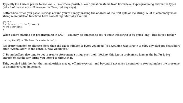 Software Engineering: Char array - why do we need +1 byte for sentinel value? (3 Solutions!!)