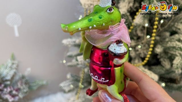 331545 Украшение елочное Крокодил-Кондитер разноцветный стекло 12см