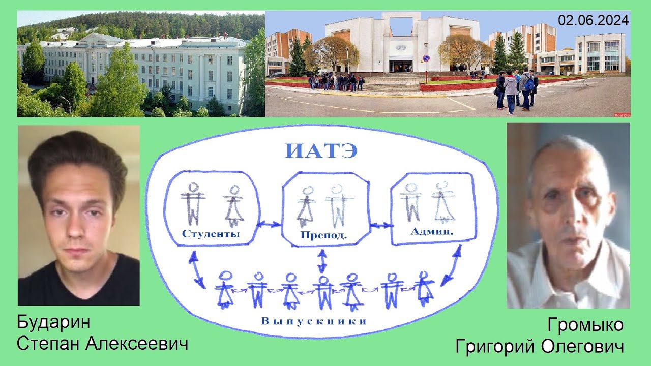 Бударин Степан Алексеевич - Громыко Григорий Олегович, вып. 1969. Знакомимся. Некоторые мелочи из истории ИАТЭ-ОФ МИФИ. Чем выпускники могут помочь сегодняшним студентам. Чем студенты могут помочь выпускникам. Список дел. === 1. книжка грымко "Ино странная речь. Само учитель" найти в библиотеке 2. Организовать нишу в библиотеке с трудами выпускников 3. Квалиметрия науки: книжка (кого-то из выпускников) по определнию качества научного труда, Володя Лунев, Сережа Лескин, видео посмотреть на встрече, в конце видео есть - человек книгу показывает - его найти и попросить эту гнигу для Громыко и в "нишу" в библиотеке. 4. Посмотреть видео у Грымко. 5. Наладить взаимное парное обучение в институте - по одному из предметов (Талгенизм=Талант+Гений). 6. ТРИЗ в ИАТЭ - организовать преподавание студентам. 7. Организовать фонд поддержки - продумать проекты и составить сметы на них. 8. Ютуб-канал "Выпускники ОФ МИФИ - ИАТЭ" https://www.youtube.com/@OIATE/videos Клуба Выпускников уже есть и забрать его, Павел Белоусов - найти пароли 9. Глазанов первый ректор ОФ МИФИ. 10. Клуб выпускников - организовать регулярные встречи, например - "вторая неделя месяца, четверг, Точка Кипения с 21:00" === Мы упомянули в разговоре - Телеграм-канал Клуба-выпускников ИАТЭ - https://t.me/iatespace Чат Клуба-выпускников ИАТЭ - https://t.me/iateclub Сайт Клуба-выпускников ИАТЭ - https://iate.space Плэй-лист "Взаимодействие выпускников с вузом" - ИАТЭ - https://youtube.com/playlist?list=PL949ECk7DvmS0ErJhWX7eU8g7rAFK0Bo2&si=ZNdrFmwdJLl3yctD ТРИЗ в ИАТЭ - Ютуб-плэй-лист на канале Пригориф Громыко https://youtube.com/playlist?list=PL949ECk7DvmSAjX9E_KwFCmWL9Dc_pvdj&si=EE4UrgcTnfLFHX08 === Связаться с Громыко Григорий Олегович можно так - Телеграм - https://t.me/GrigorijGromyko ВКонтакте - https://vk.com/id23067191 Фэйсбук - https://www.facebook.com/grigorij.gromyko ===