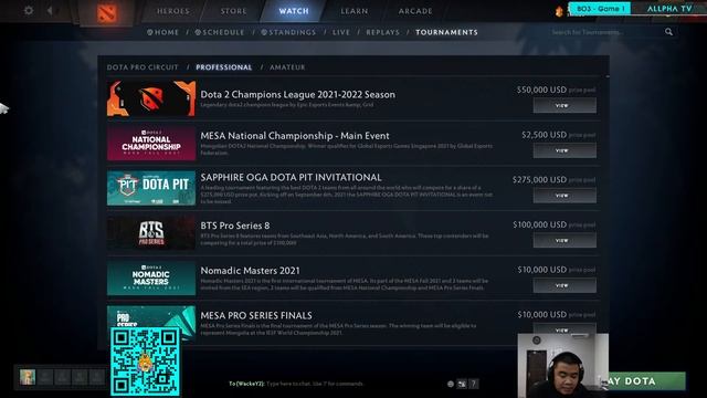 Support the Stream: Link Saweria https://saweria.co/AllphaTV Link StreamLabs https://www.streamlabs.com/AllphaTV Link Bracket : https://liquipedia.net/dota2/BTS/Pro_Series/8/Southeast_Asia GIVE AWAY ALERT!! 1000 SUBSCRIBER: - Khusus Subscriber Allpha TV - Total Hadiah 5 ARCANA PHANTOM ASSASIN Allpha TV Steaming Schedule: 13.00 | AG vs GXR 16.00 | AG VS MEOW MEOW For business inquiries : allphatv.channel@gmail.com Follow us on Instagram: https://www.instagram.com/allpha.esports (@Allpha.tv)