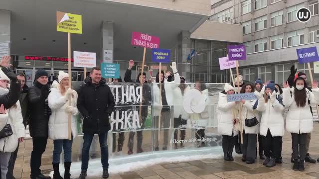 25 января на площадке главного здания РУДН прошло профориентационное мероприятие от РДШ, посвященное Дню студента. Главная идея акции — сказать школьникам, что они могут выбрать любую профессию, которая им по душе. Диана Карманова — корреспондент, оператор, монтажёр © Перезалив архива мастерской Universal Journalists, Москва, январь 2021