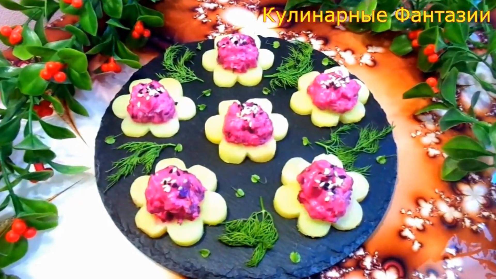 Предлагаю Красивую Аппетитную и Очень Вкусную Закуску на Любой Праздник! Ингредиенты: Картофель отварной 2 шт Свекла отварная 1 шт Сельдь филе небольшой кусочек Укроп Сливочный или творожный сыр 2 ч.л Семена кунжута по желанию