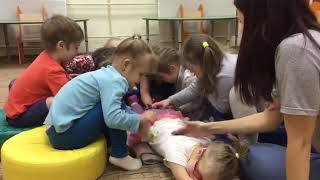 В данном видеоролике представлен фрагмент группового занятия в Даунсайд Ап для детей 5-6 лет. Педагоги и дети играют в тактильную игру 'Птичка зёрнышки клюёт', в которой дети по очереди оказываются в центре круга - и кто в центре , тому другие дети делают 'массаж' - выполняют разные движения, которые похожи на то как 'клюют птички', как 'собачки грызут косточку' и т.д. Дети любят такие игры - ведь можно и повеселиться, и расслабиться! Одновременно незаметно для самих себя дети учатся соблюдать правила - очерёдности, последовательности и др... Как и положена, игра содержит в себе решение многих психологических и педагогических задач, актуальных для детей: это и совместная деятельность, и ситуация успеха, и тактильная нагрузка, и мотивация к проговариванию; а также в центре внимания по очереди может оказаться каждый! #занятия_в_ДСА #сенсорика #Даунсайдап #синдромдауна Благотворительный фонд «Даунсайд Ап» оказывает бесплатную психолого-педагогическую помощь семьям с детьми с синдромом Дауна. Больше информации — на сайте https://downsideup.org