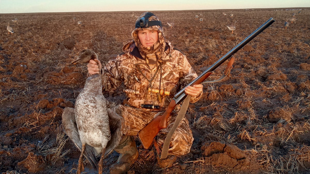 Охотимся на гуся на пахоте с окопов,небольшой компанией.