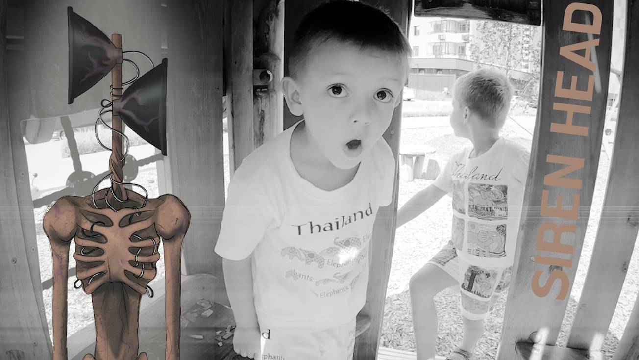 Филипп и Лев встретили Сиреноголового в реальной жизни на детской площадке