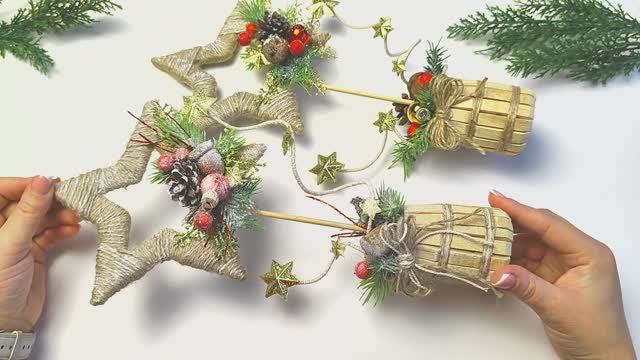 ⭐️РОЖДЕСТВЕНСКИЕ ЗВЕЗДЫ ИЗ ДЖУТА 🎄 НОВОГОДНИЕ ПОДЕЛКИ СВОИМИ РУКАМИ ⭐️