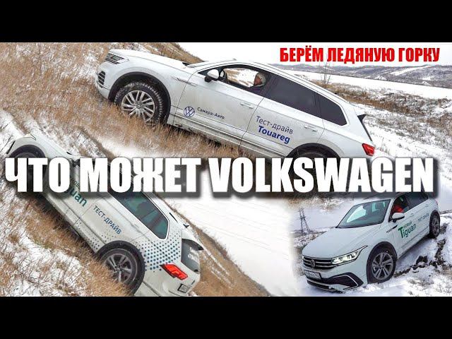 Volkswagen Touareg против Volkswagen Tiguan в ледяную гору.