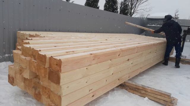 Начали монтаж брусового дома в Щелковском районе.