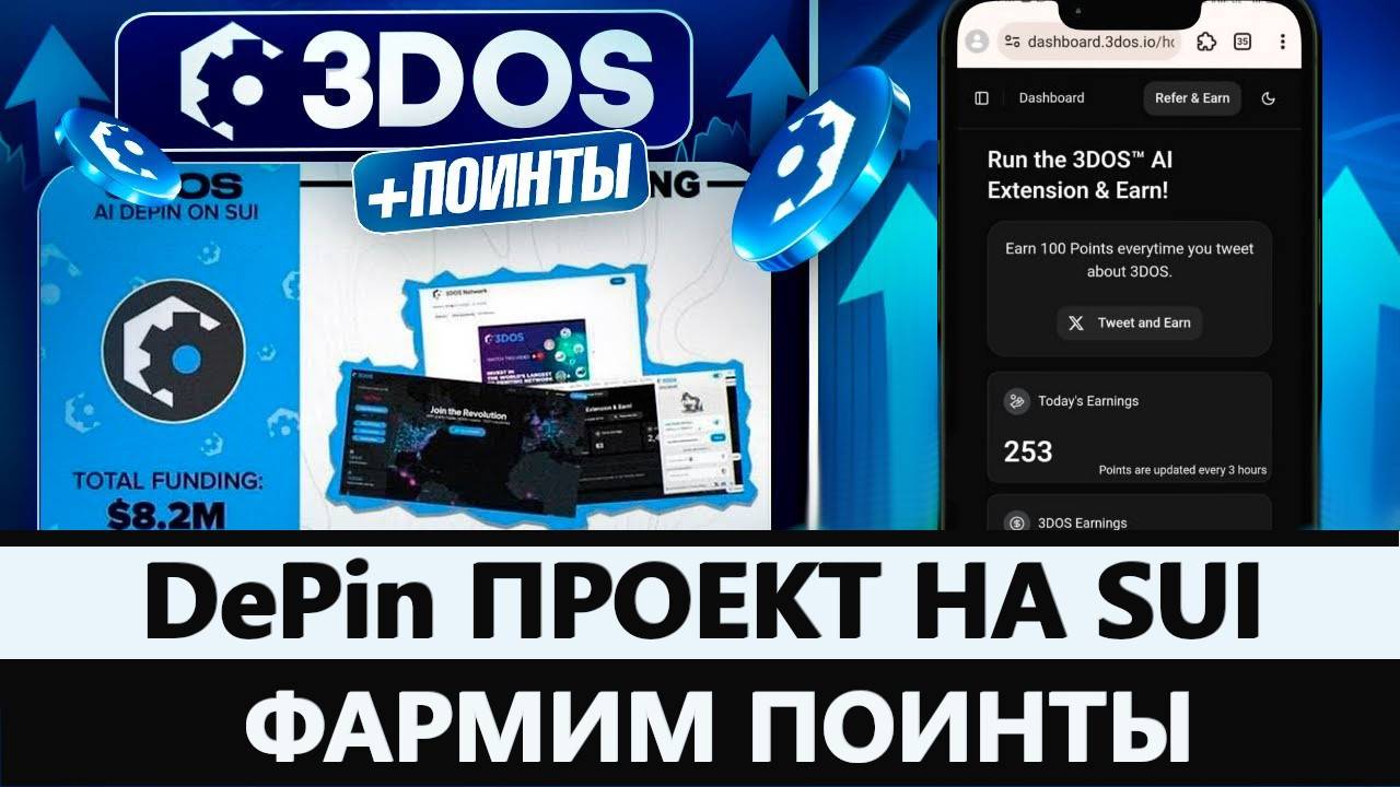 Telegram канал - https://t.me/in_income Пост в телеграмме на проект - https://t.me/in_income/53/2802 Прямая ссылка на участие в проекте - https://dashboard.3dos.io/register?ref_code=76bceb В этом видео покажу как зарабатывать деньги в интернете с нуля и без вложений в интересном проекте 3DOS 3DOS - DePin проект, в котором нужно установить расширение в браузер, и это расширение будет приносить поинты когда есть подключение к интернету. Эти поинты обменяют нам на токены. Проект имеет хорошие инвестиции и подтвержденный дроп